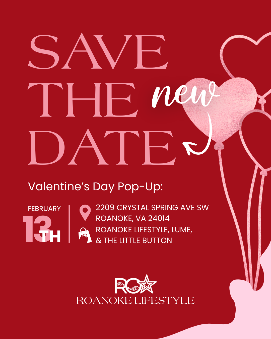 Save The NEW Date: February 13th Valentine's Pop-Up
